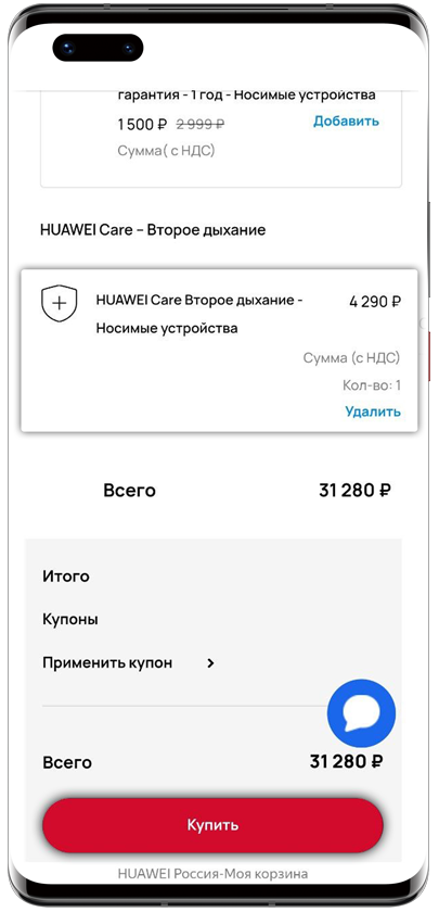 Программа «HUAWEI Care Второе дыхание» дает Потребителю право на безвозмездное устранение